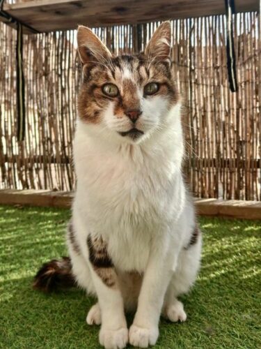 C’est un beau chat, au regard très touchant, rempli de tendresse, resté trop discret en enclos et pas à l’aise avec ses congénères.