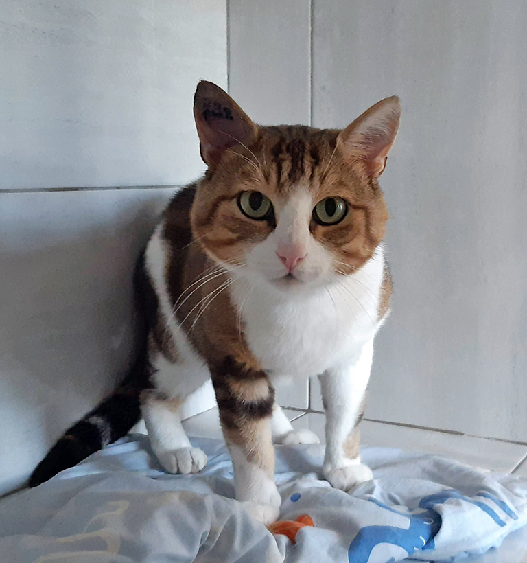 AMIRA (chat libre) otite suppurée à gauche oreilles rose cystadénomes à l’entrée du conduit ulcère juste à côté du cive inférieur gauche ancienne fracture machoire ? 5,25 kg