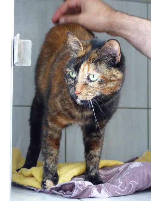 MINETTE tigrée 12 ans Sartrouville sur la terrasse problème chaine mammaire