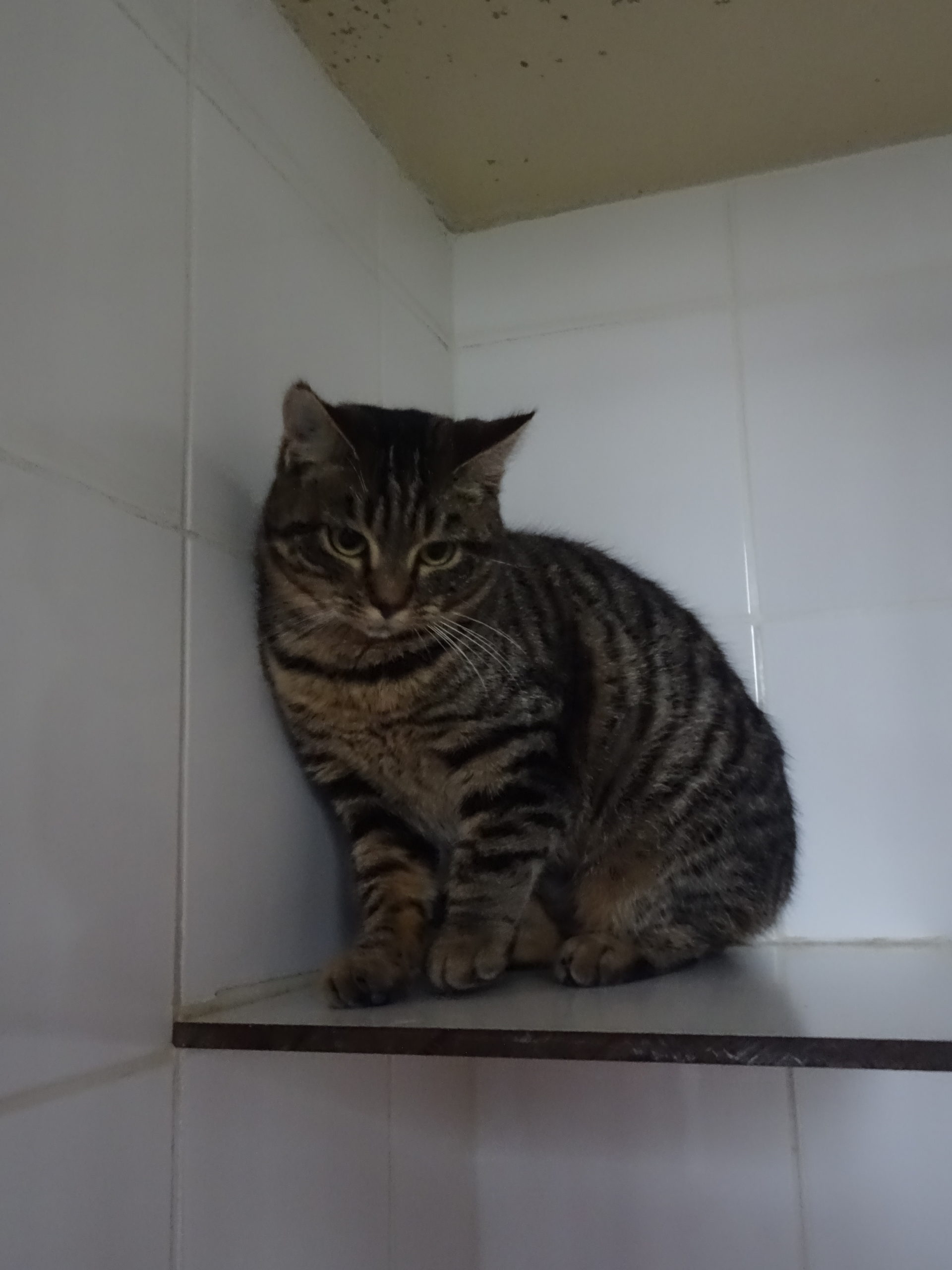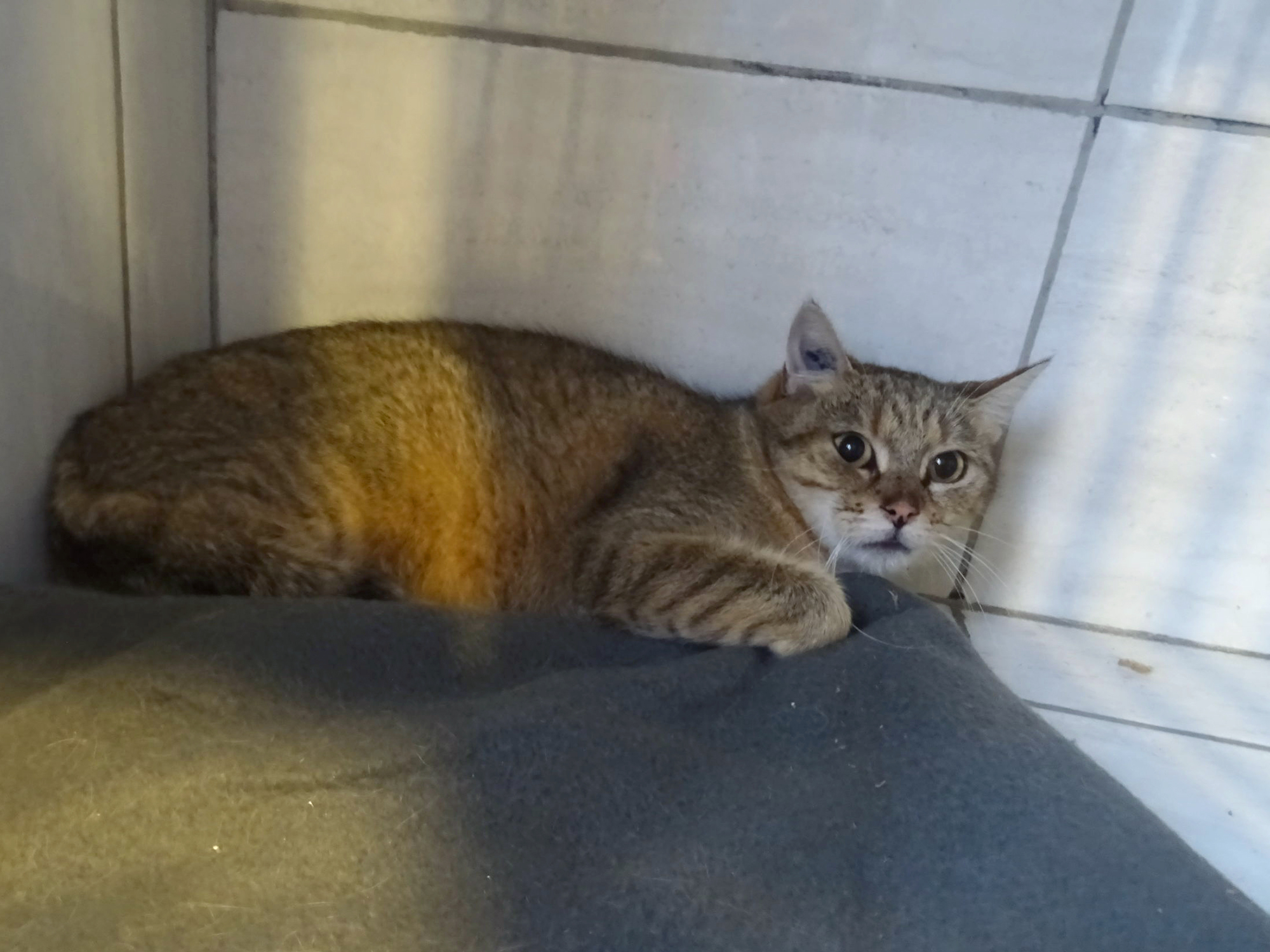 RÊVE tigrée de 11 ans ex chatte libre de Deuil La Barre stérilisée il y a 10 ans, revenue au Point de Chute en juin pour soigner une pancréatite, arrivée au bout de sa route