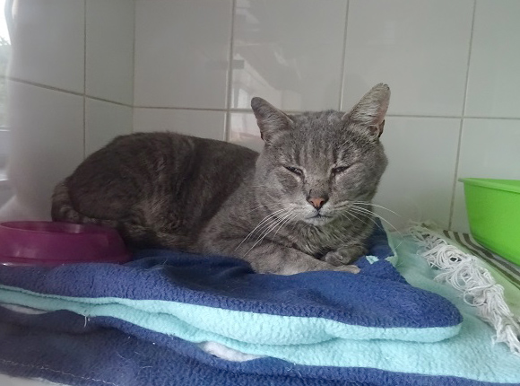 BRIDGET bleu et blanc de 14 ans arrivé en février 2017 testé FIV+ et sauvageon mais adorant les chats, est décédé cette semaine d’une forte crise d’urée. BRIDGET était en accueil depuis mars, merci à sa FA.