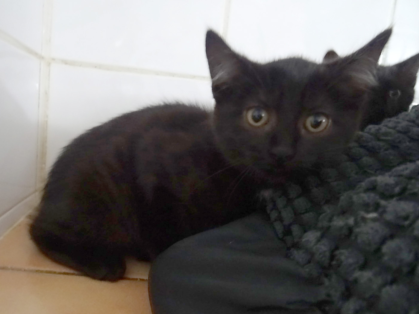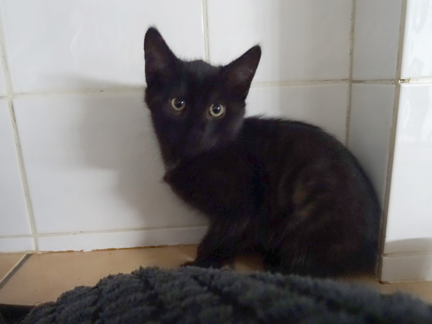 TESS et TANAGRA chatonnes noires de 3 mois de Taverny mise à la rue par le neveu après le décès de leur propriétaire et l’admission en EHPAD de sa femme