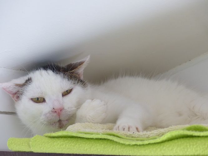 MARVEL chaton de 2 mois blanc et noir poils longs décédé du typhus en famille d’accueil