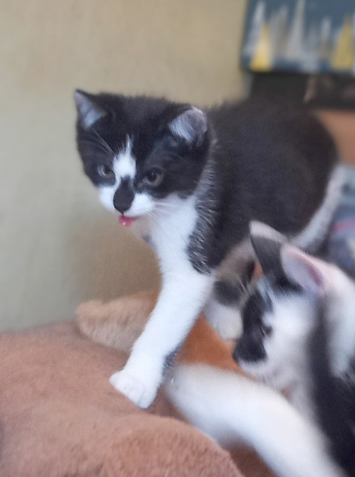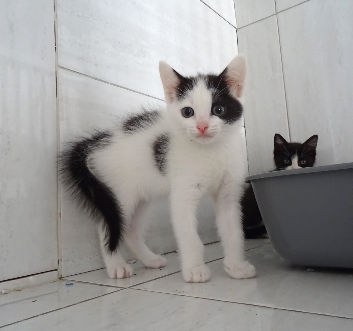 CARLITO noir 4 mois CHOPIN tigré et blanc 2 mois 1/2 Cormeilles en Parisis CHOPIN fièvre piqure antibio