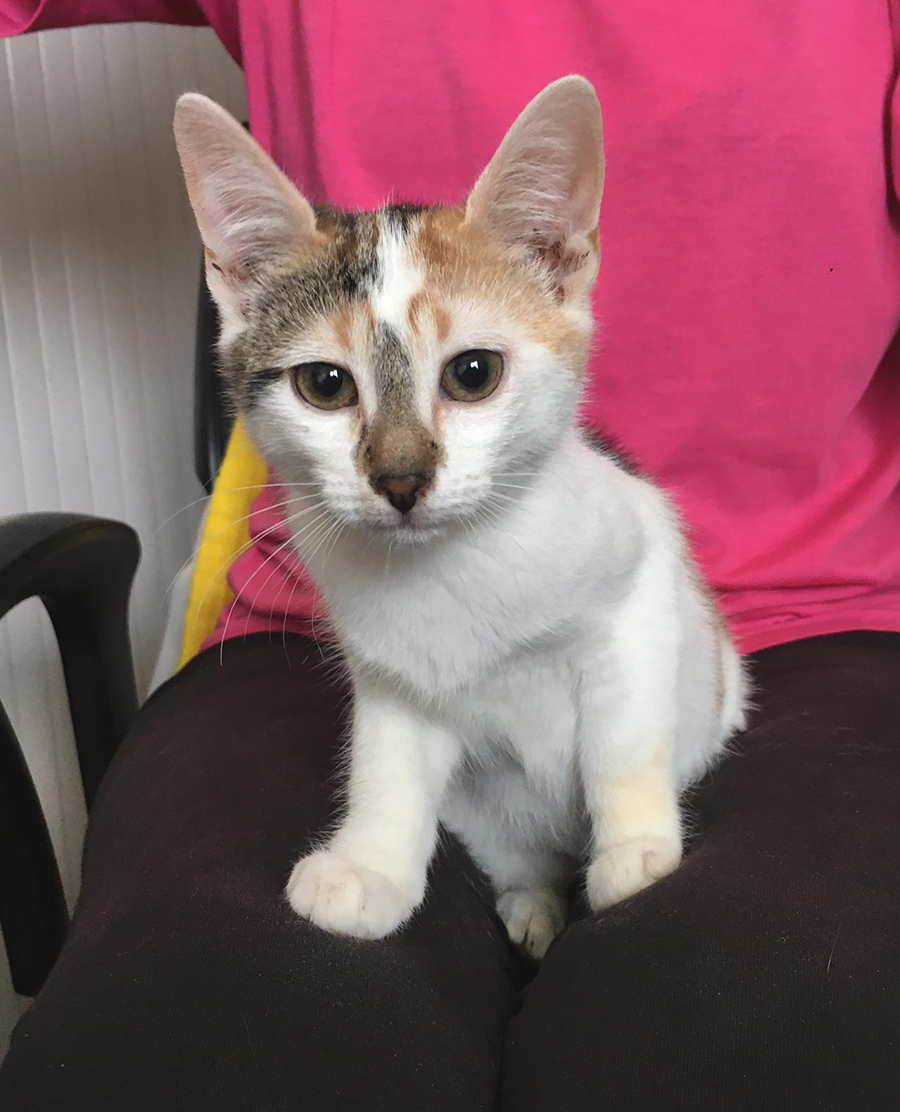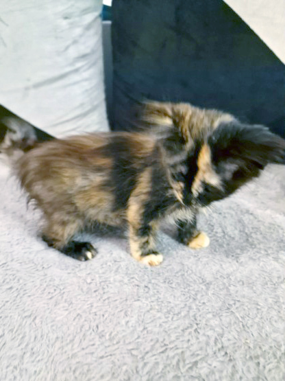 ELLI chatonne tricolore tigrée d’1 mois arrivée d’Ecouen avec ses sœurs cette semaine, décédée dans son sommeil
