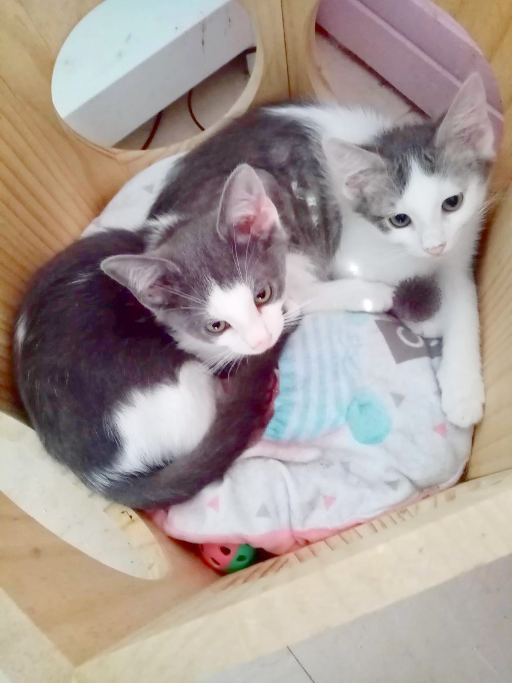 AKI gris et blanc 4 mois et ASTRO gris et blanc 4 mois