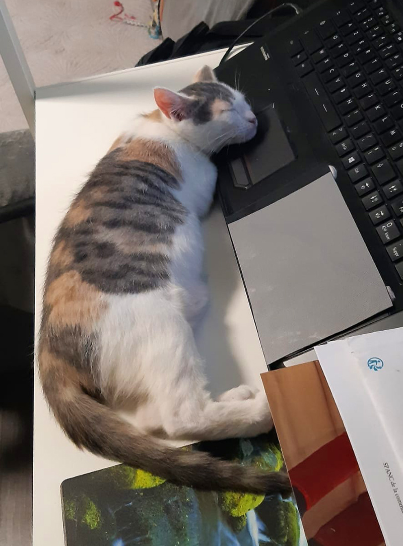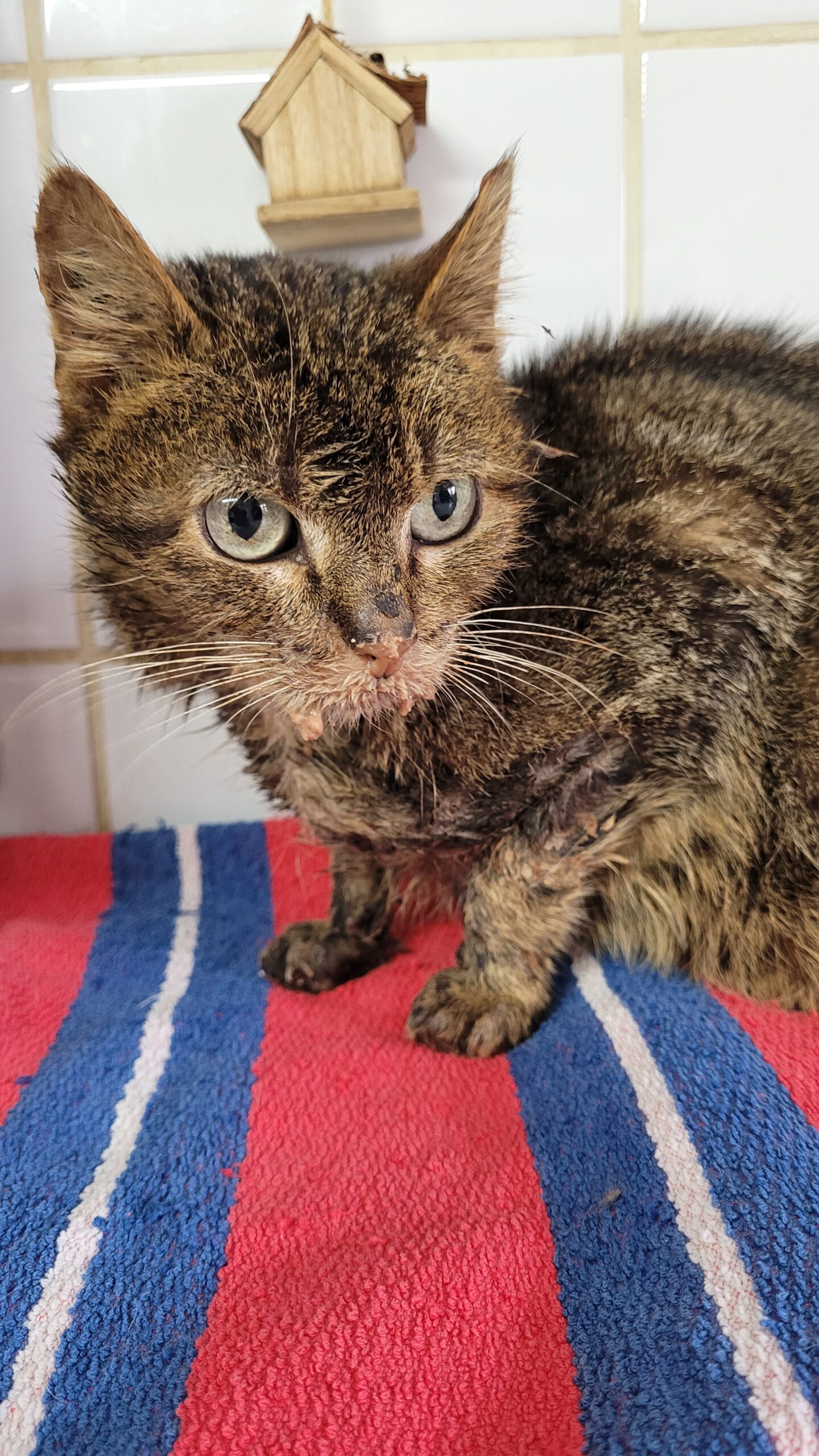 PAQUERETTE tigrée de 2 ans arrivée en novembre 2020, partie ce vendredi en urgence à la clinique : urée et créatinine indosables, lymphome sur rein gauche, a perdu 400 grammes en 9 jours hypothermie