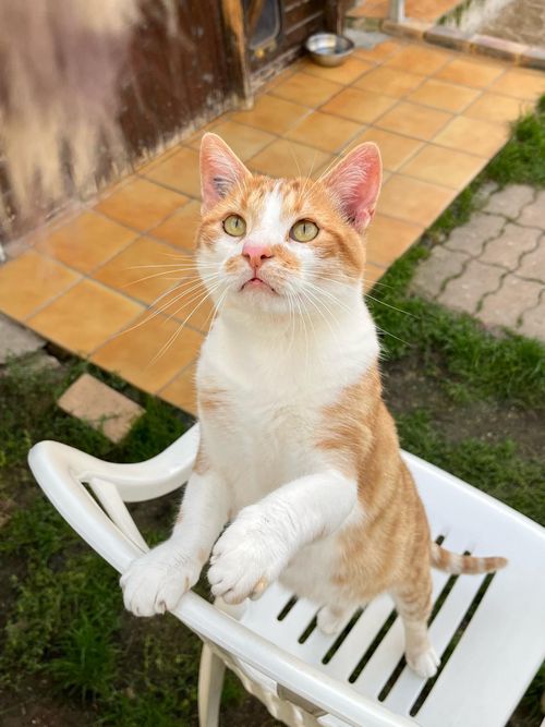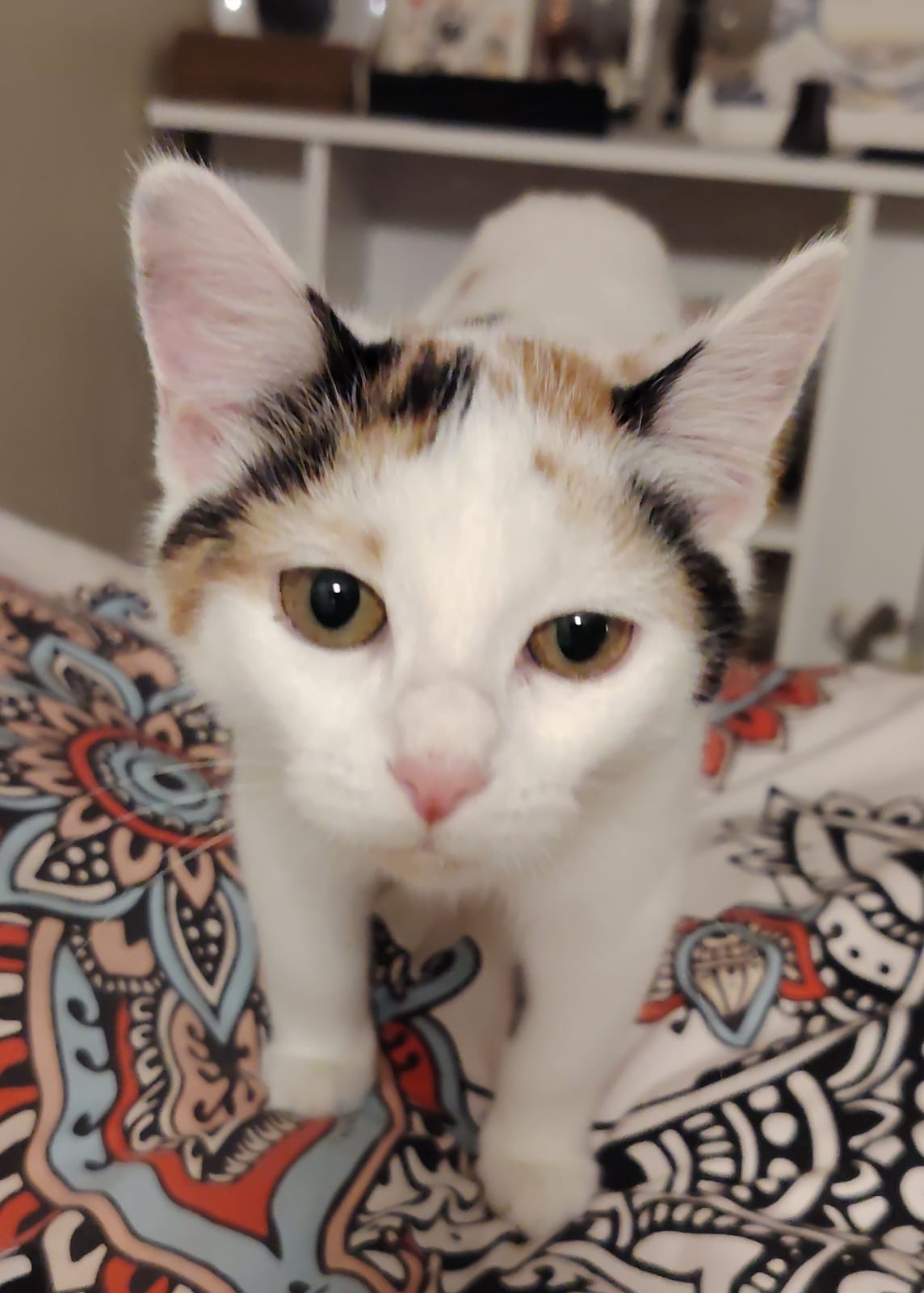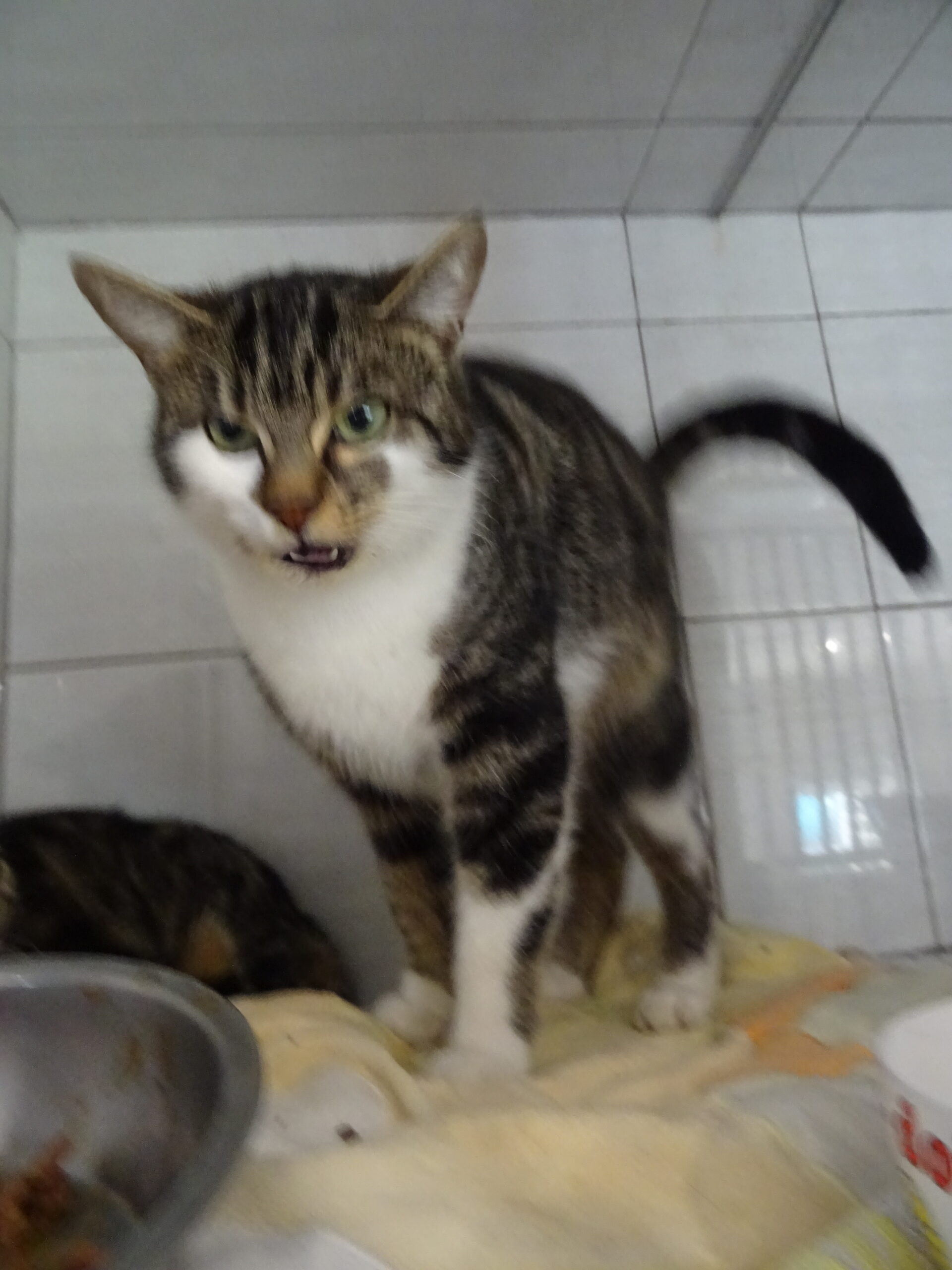 ATHENA tigrée et blanche 2 ans Argenteuil, en soins pour la teigne