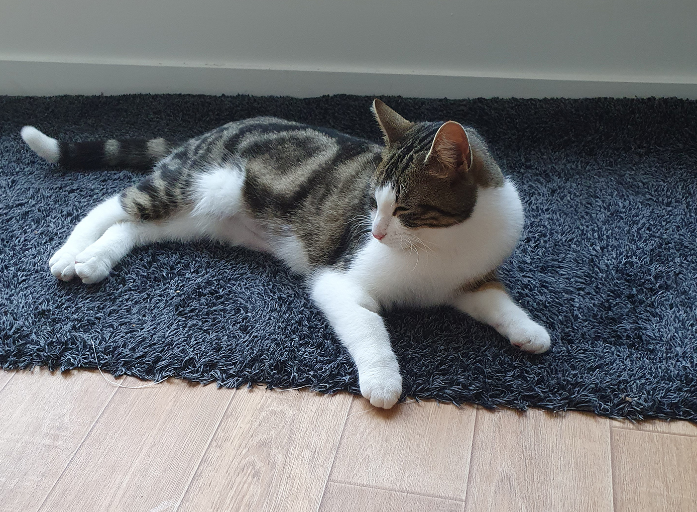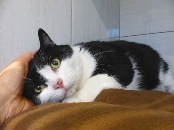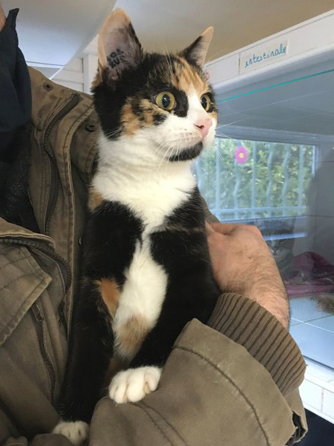 RITA tricolore tigrée de 12 ans arrivée en septembre 2016, restée sauvageonne, victime d’un AVC majeur dû sans doute à son traitement pour l’hypertension