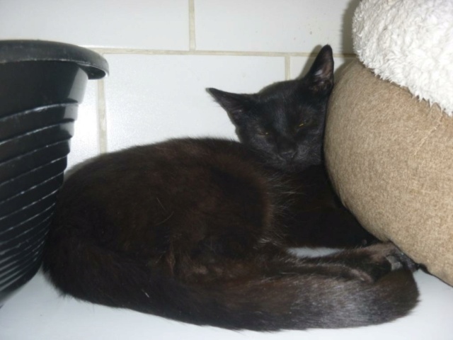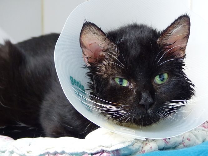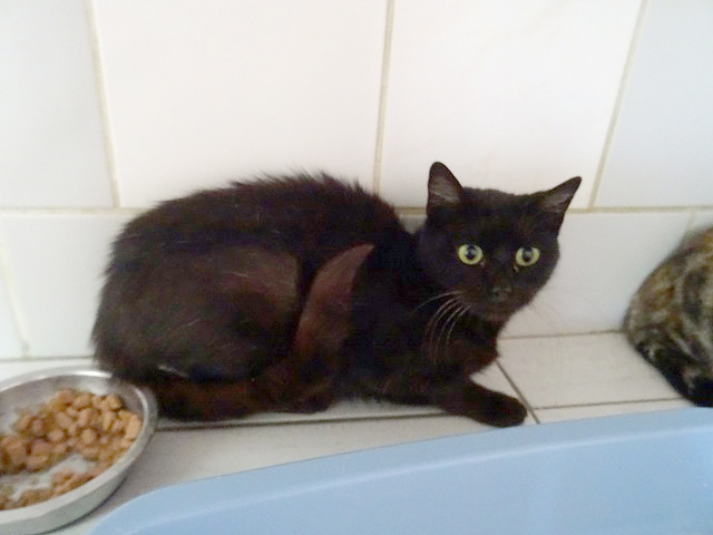 MIMI ex chatte libre noire 11 ans, Herblay. Plaie patte arrière + gale des oreilles