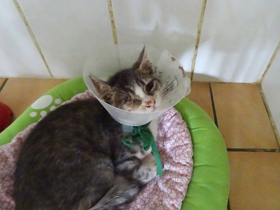SYBILLE (chaton) retrait fils œil énucléé bonne cicatrisation