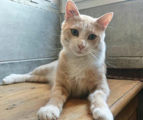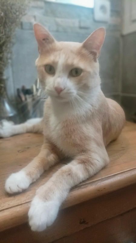 Ce jeune chat à la robe crème attend une famille avec un jardin et sans autre chat.