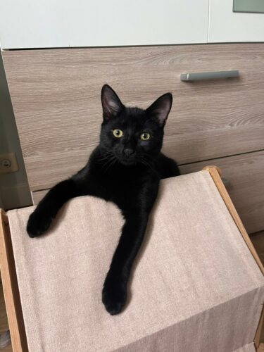 Emile a été testé positif au virus du FIV. Les frais d’adoption sont donc réduits car il faudra faire une nouvelle PCR au moment de la stérilisation pour vérifier l’analyse.