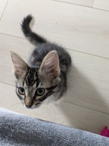 Adorable chatonne curieuse et joueuse. Très câline et pot de colle. C’est une petite doucette, calme et adorable. Un petit coeur d’amour.
