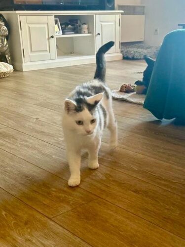 - Couleur : Tigré gris et blanc