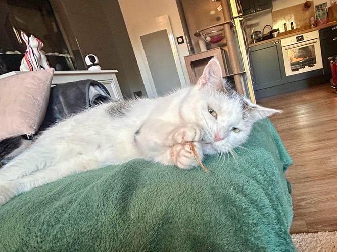 - Couleur : Tigré gris et blanc