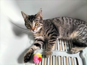 Malice arrive de Herblay avec plusieurs autres chatons. Ils vivaient en appartement où ils étaient trop nombreux.
