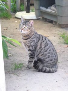 Sa robe est tigrée avec des rayures courtes, et elle a quelques poils en plumets sur les oreilles.