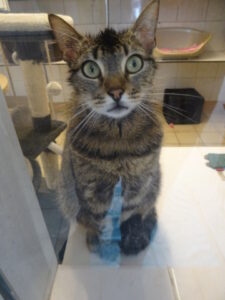 MANDREA est une jolie chatte qui s’est détendue au fur et à mesure des années , grâce à la persévérance des bénévoles.