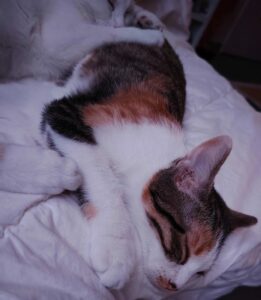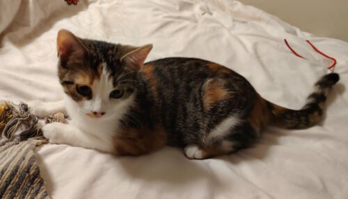 C’est une adorable grande chatonne qui sera timide au début. Une fois en confiance, c’est une très gentille minette. Elle s’entend très bien avec sa sœur Magdalena. Une adoption duo serait un vrai plus mais pas obligatoire.