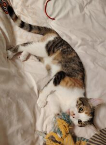 C’est une adorable grande chatonne qui sera timide au début. Une fois en confiance, c’est une très gentille minette. Elle s’entend très bien avec sa sœur Magdalena. Une adoption duo serait un vrai plus mais pas obligatoire.