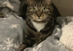 - Couleur : Tigré marron et blanc