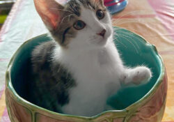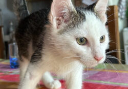 - Couleur : Tigré marron et blanc
