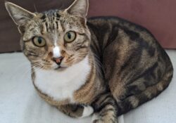 - Couleur : Tigré marron et blanc