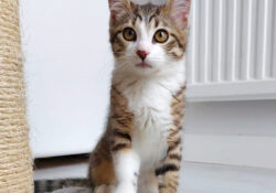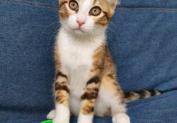 - Couleur : Tigré marron et blanc