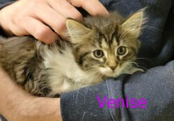 - Couleur : Tigré marron et blanc