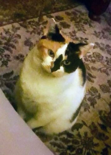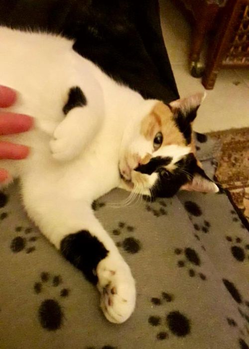 Passiflore adore venir s’installer sur les jambes et fait des gros câlins coup de tête.