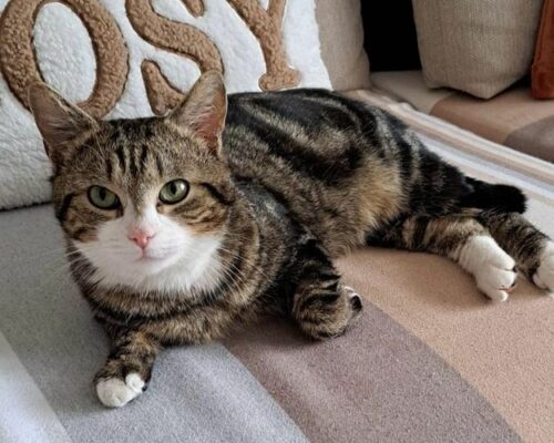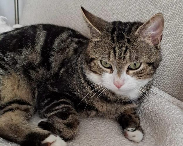- Couleur : Tigré marron et blanc
